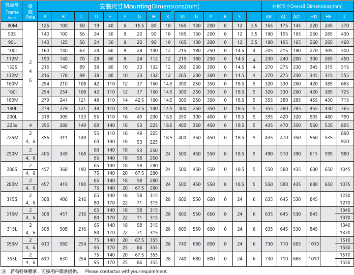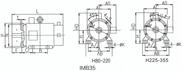 YVF2系列變頻調速三相異步電動機安裝及外形尺寸圖